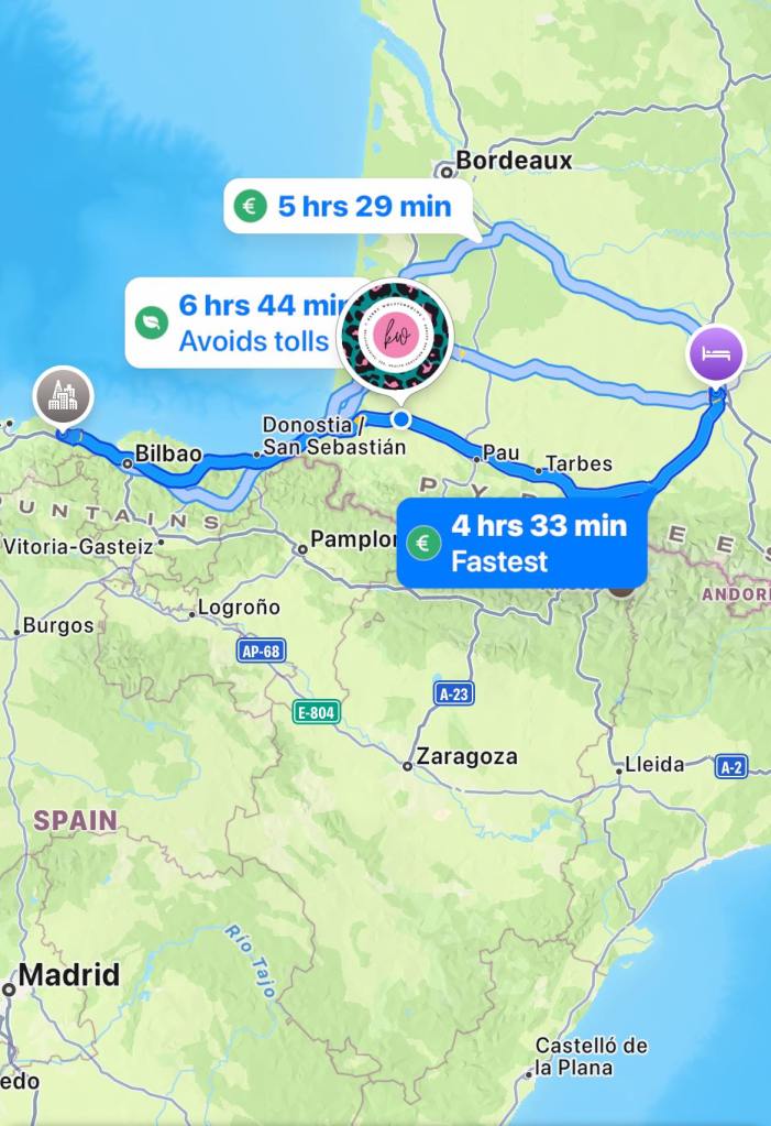 Just a reminder at this point, I love Carl…but driving through France with him at the wheel nearly finished me off. My anxiety (which is does not even exist) hit the f**king roof. He was flying down those roads, with me inches away from being splattered by oncoming traffic. By the time we hit San Sebastián, I was DONE. We stopped for food, an oxtail burger (weird choice but actually super nice!) refuelled, and were back in the car, where we could finally start to take in the scenery, the coastline, sea views, in this area of Spain were proper breathtaking.